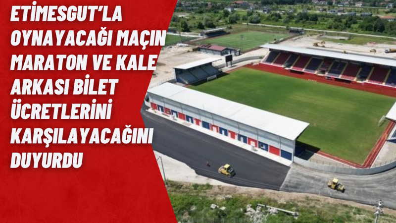 DÜZCE(DMHA) Düzce Cam Düzcespor, Pazar günü saat 14.00’da Düzce Şehir Stadyumunda Etimesgut ile karşı karşıya gelecek. Karşılaşmanın bilet fiyatları kapalı tribün 100TL, maraton tribünü 25TL, kale arkası 5TL olarak açıklandı. Karşılaşmanın bilet fiyatları açıklanması sonrası Düzce Belediye Başkanı Faruk Özlü maraton tribünü ve kale arkası bilet ücretlerini karşılayacağını duyurdu. Biletler maç öncesi stadyum gişesinden ücretsiz olarak dağıtılacak. Düzce Belediyesi, Düzce Cam Düzcespor taraftarlarının maça ulaşımı için maç günü ücretsiz otobüs seferleri gerçekleştirecek.