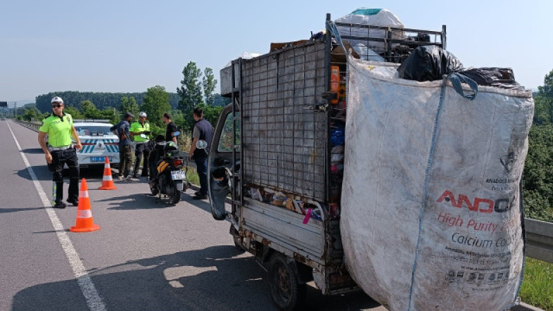 Edinilen bilgiye göre, trafik ekipleri otoyola bağlanan yollarda yaptıkları denetimde plastik, kağıt ve pet şişe gibi atıkları toplayan bir kişiyi durdurdu. Atık toplama aracının trafiğe tescilli olduğu ancak plakasının takılı olmadığı belirlendi. Şahsa 6 bin 890 TL para cezası uygulandı.