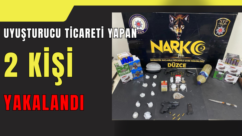 DMHA- Düzce İl Emniyet Müdürlüğü Narkotik Suçlarla Mücadele Şube Müdürlüğü ekiplerince yapılan operasyonda uyuşturucu ticareti yaptığı tespit edilen 7 adet suç kaydı bulunan S.O. ve 8 adet suç kaydı bulunan N.B. isimli 2 şahıs yakalandı. Yapılan operasyonda uyuşturucu kullanan H.D., 2 adet suç kaydı bulunan M.S. ve 1 adet suç kaydı bulunan İ.B. isimli şahıslar polis ekipleri tarafından gözaltına alındı. Polis ekiplerinin şahıslar üzerinde ve depoda yaptığı aramalar neticesinde 14 parça halinde daralı 125 gram Metamfetamin maddesi, 1 parça halinde 350 gram Bonzai, 2 parça halinde daralı 18 gram Esrar , 2 adet Ruhsatsız tabanca ve tabancalara ait 33 fişek, 2 adet Ruhsatsız tabanca ve tabancalara ait 33 fişek, 1 adet Bıçak ele geçirildi.