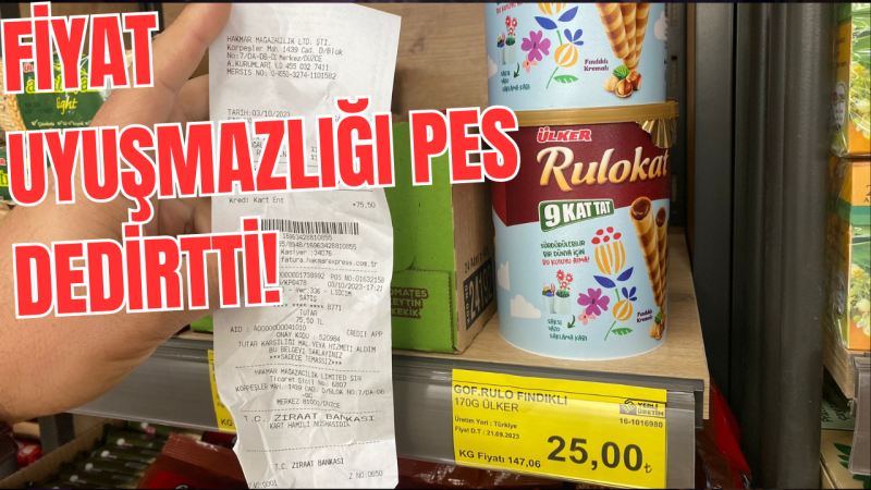 Fiyat farkı müşteri tarafından fark edildiğinde ise kasiyer yanlış etikete bakmışsınızdır cevabını vererek olayı geçiştirmeye çalıştığı görüldü , Israrcı olan müşteri aldığı ürünün rafına gittiğinde ise satış fiyatının 25 TL olduğunu gördü. Bu kez de raf elemanı, eleman yetersizliği olduğunu savundu ve güncellenen fiyatların etiketlerini değiştirmeye yetişemediklerinin bahanesini sundu. Bu da yetmezmiş gibi müşteri ''ürünü indirimli alabilirsiniz yerine almak zorunda değilsiniz iade edebilirsiniz'' cevabı ile karşılaştı. Market çalışanları müşterinin tepkisinin ardından şikayetçi olunacağını öğrenince ürünün fiyat farkını müşteriye bir de ceplerinden vermeyi teklif ettiler. Yaşanan olay ile ilgili, şikayet üzerine ilgili kurumların söz konusu market ile ilgili inceleme başlatacağı öğrenildi.