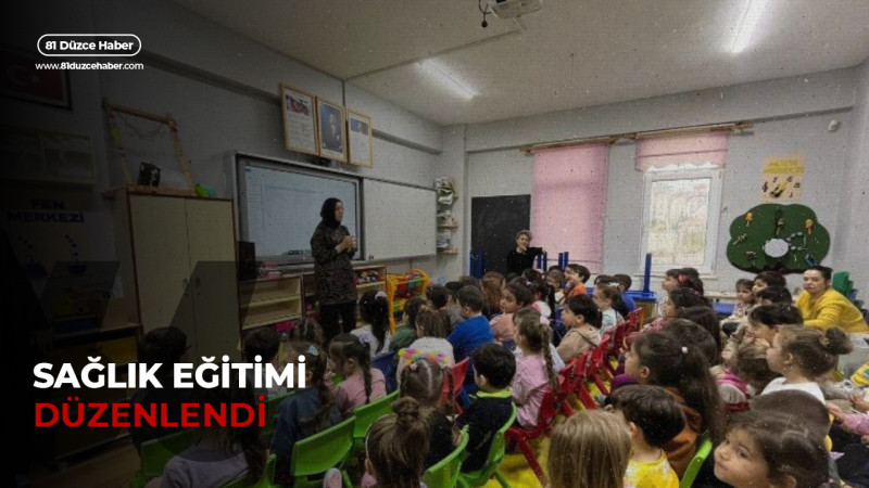 DMHA- DÜZCE- Düzce Sağlık Müdürlüğü’ne bağlı Akçakoca İlçe Sağlık Müdürlüğü, miniklere eğitim verildi. Akçakoca İlçe Sağlık Müdürlüğü ekipleri Seher Fedai Anaokulunda eğitim gören miniklere ağız ve diş sağlığı hakkında eğitim düzenledi. Slayt sunumu ve maket diş fırçasıyla birlikte gerçekleştirilen eğitim, veliler tarafından takdir topladı.