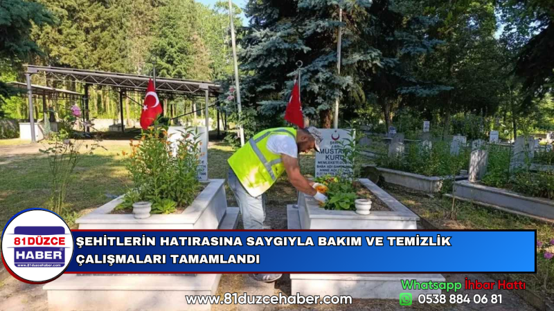 Düzce İl Özel İdaresi, şehit kabirlerinde gerçekleştirdiği temizlik ve bakım çalışmalarını tamamladı. Kabir taşları dualarla özenle temizlenirken, şehitlerin isimleri saygıyla anıldı.