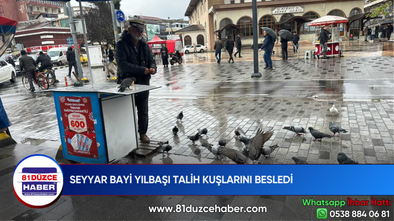 DMHA DÜZCE - Düzce'de bir milli piyango seyyar bayisi güvercinleri kendi elleriyle besledi. Çevredeki vatandaşların güzel tepkileriyle karşılanan bu davranış soğuk havada insanların içini ısıttı. Seyyar bayi yaptığı esprileriyle yılbaşı talih kuşlarını besliyorum sonra kimlerin başına konacak bilmiyorum dedi. Kimlerin başına konarlarsa ikramiye onlara çıkacak ikramiye çıkan kişiler inşallah beni de görür diyen seyyar bayi kime çıkarsa güle güle yesin temennisinde bulundu.