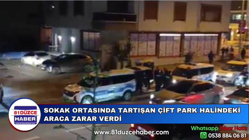 SOKAK ORTASINDA TARTIŞAN ÇİFT PARK HALİNDEKİ ARACA ZARAR VERDİ