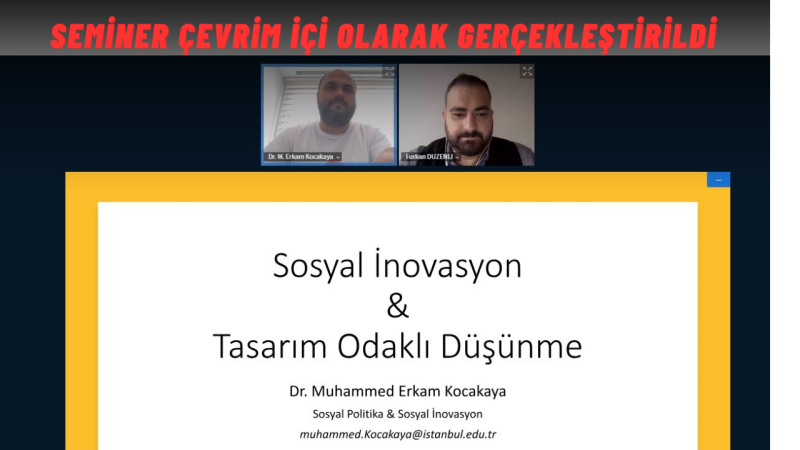 Düzce Üniversitesi Sosyal Bilimler Meslek Yüksekokulu tarafından düzenlenen “Sosyal İnovasyon ve Tasarım Odaklı Düşünme” başlıklı seminer, çevrim içi olarak gerçekleştirildi.
