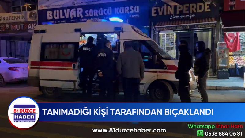 Gece saatlerinde tanımadığı bir kişi tarafından bıçaklanan O.A. isimli şahıs olay yerinden kaçarak etrafta bulunan işletmeye sığındı yardım istedi.