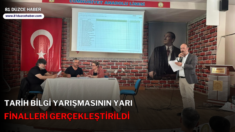 Düzce il Milli Eğitim Müdürlüğü tarafından Cumhuriyet Anadolu Lisesi ve Farabi Anadolu Lisesi'nin koordinesinde gerçekleştirilen Ortaöğretim Kurumları arası Tarih Bilgi Yarışmasının yarı finalleri bugün Cumhuriyet Anadolu Lisesinde yapıldı.
