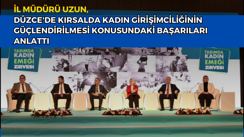 DMHA DÜZCE - Tarım ve Kırsal Kalkınmayı tarafından düzenlenen “Tarımda Kadın Emeği Zirvesi"ne Düzce İl Tarım ve Orman Müdürü Esra Uzun katıldı. Destekleme Kurumu Toprağa emeğiyle, alın teriyle hayat veren, üreten ve ürettiğine değer katan kırsaldaki kadınların başarı hikayelerinin paylaşıldığı zirvede, İl Müdürü Uzun da “Kırsal Alanda Kadın Yatırımlarına Yönelik Destekleme Mekanizmaları" konulu Panele Kırsalda Kadın Girişimciliğinin Güçlendirilmesi ve Kooperatifleşme konusunda panelist olarak katıldı. Düzce'de Kırsalda Kadın Girişimciliğinin Güçlendirilmesi konusunda yapılan çalışmaları ve Tarım ve Orman Bakanlığının destekleriyle kurulan kadın kooperatiflerinin başarı hikayelerini anlattı.