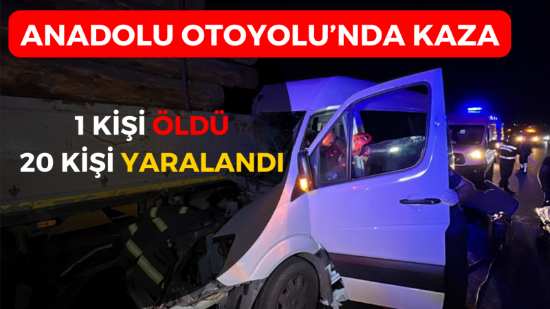 Kaza Anadolu Otoyolu’nda meydana geldi. Edinilen bilgilere göre Ankara’dan İstanbul istikametine seyir halinde olan Ramazan E. idaresindeki 37 AAY 907 plakalı tomruk yüklü tır arıza yapınca, sürücü Gümüşova rampalarında aracını yol kenarına çekti. Bu esnada aynı istikamette seyir halinde olan Erzurum’dan İstanbul’a giden Nasır Ö. idaresindeki 25 ACS 674 plakalı Mercedes marka minibüs, tomruk yüklü tıra arkadan çarptı. İhbar üzerine bölgeye itfaiye, sağlık, polis ve jandarma ekipleri sevk edildi. Aracın ön kısmında sıkışan Asiye Ö.’nün kurtarma çalışmaları yaklaşık 30 dakika sürdü. Kazada 10’u çocuk 20 kişi yaralanarak hastaneye kaldırılırken, 1 kişi hayatını kaybetti. Kaza sebebi ile İstanbul istikameti tek şeritten verilirken, kaza ile ilgili inceleme başlatıldı.