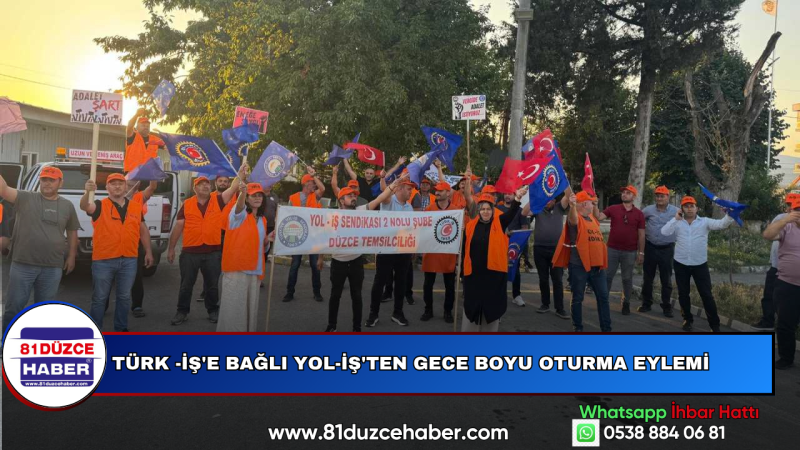 Düzce İl Özel İdaresi’ne bağlı Mergiç Şantiyesi’nde görev yapan ve Türk-İş Konfederasyonu’na bağlı Yol-İş Sendikası bünyesinde örgütlü işçiler, haklarını alabilmek amacıyla sabaha kadar süren oturma eylemi gerçekleştirdi.