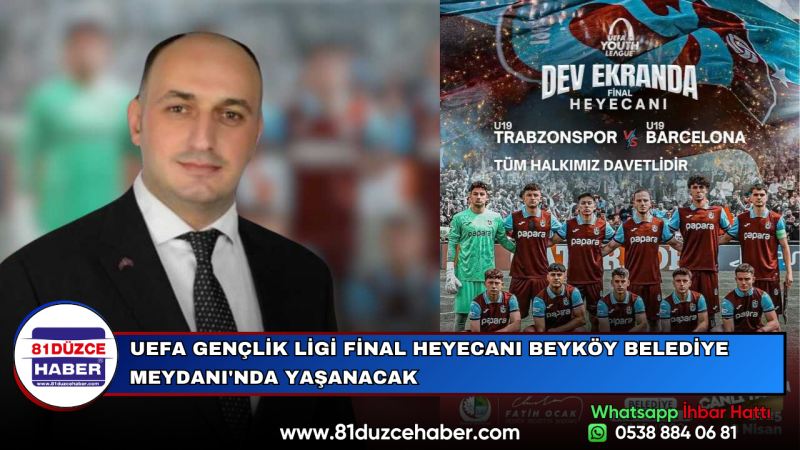 DMHA DÜZCE-UEFA Gençlik Ligi Finali’nde Trabzonspor U19 Takımı ile Barcelona U19 Takımı arasında oynanacak olan karşılaşma, Beyköy Belediye Meydanı’nda dev ekranda canlı olarak yayınlanacak.28 Nisan 2025 Pazartesi günü saat 19.00’da başlayacak olan final müsabakası için tüm hazırlıklar tamamlanırken, meydanda futbolseverler için coşkulu bir atmosferin oluşturulması planlanıyor. Organizasyon, spora ve gençliğe verdiği destekle bilinen yerel yönetimin katkılarıyla hayata geçiriliyor.Beyköy halkı ve çevre ilçelerden vatandaşlar, bu tarihi mücadeleyi hep birlikte izlemeye davet edilirken, Trabzonspor’un genç yeteneklerine destek olunması çağrısında bulunuldu.