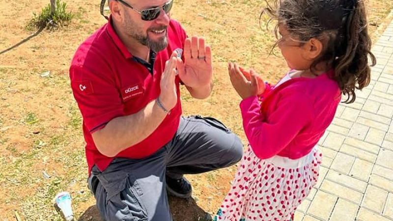 Düzce’den, Gaziantep Nurdağı’na giden UMKE ve 112 gönüllüleri deprem bölgesinde bayramda çocukların yüzlerini güldürdüler.