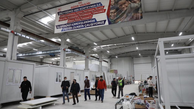 Düzce Valiliği, deprem bölgeleri için üretimini sürdürdüğü konteyner merkezlerinde günlük üretim sayısını 100’den 120’ye çıkarttı.
