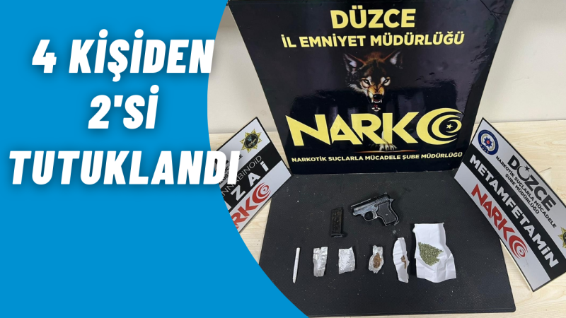 Düzce polis ekiplerinin yaptığı çalışmalar neticesinde uyuşturucu madde ticareti yaptığı tespit edilen 3 kişi uyuşturucu kullanan ve bulunduran 1 kişi tespit edildi. Yapılan operasyon neticesinde yakalanan 4 kişiden 2'si tutuklandı.