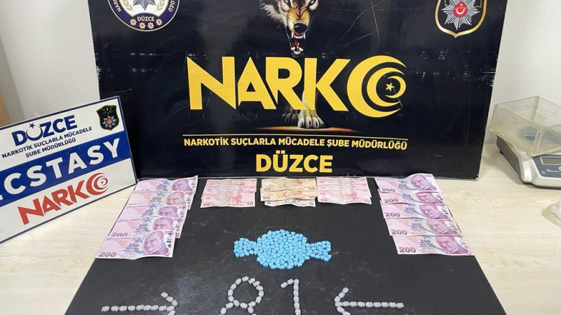 Düzce Cumhuriyet Başsavcılığımızca yürütülmekte olan soruşturmada Narkotik Suçlarla Mücadele Şube Müdürlüğünce yürütülen çalışmada Düzce merkez Darıcı Mahallesi Bayrak Caddesi üzerinde durumundan şüphelenilerek durdurulan İstanbul trafiğine kayıtlı araçta bulunan S.G. ve O.Ş. isimli şahısların üzerinde yapılan aramada; 215 adet Extacy hap ve suçtan elde edildiği değerlendirilen 2 bin 165 TL para ele geçirildi. Şüpheli şahıslar hakkında uyuşturucu madde imal ve ticareti suçundan işlem yapıldı.