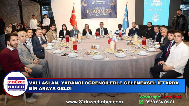 Düzce Valisi Selçuk Aslan ve Genel Sekreter Nuri Çelik, farklı ülkelerden gelip Düzce’de eğitim hayatına devam eden öğrencilerle iftar programında bir araya geldi.