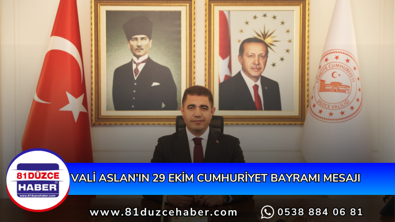 Cumhuriyetin ilanın 101. Yıl dönümünde Düzce Valisi Selçuk Aslan bir mesaj yayınladı.