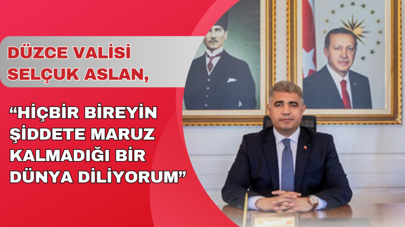 Düzce Valisi Selçuk Aslan mesajında "25 Kasım Kadına Yönelik Şiddete Karşı Uluslararası Mücadele Günü'nde hep birlikte yeniden idrak etmeliyiz ki; kadına şiddet, toplumsal bir sorundur ve karşısında durmak hepimizin asli görevi ve sorumluluğudur. Toplumumuzun her bir bireyi, kadına yönelik şiddetle mücadelede etkin bir rol oynamalı ve sorumluluk almalıdır. Kadınlarımıza saygı göstererek; saygı, hoşgörü, eşitlik ve adalet temelinde bir toplumun inşasına katkı sağlayalım. Kadına Yönelik Şiddete Karşı Uluslararası Mücadele Günü’nü; kadına yönelik şiddetle mücadelede yeni bir adım atmak ve toplumsal değişim nazarında bir araya gelmek için bir fırsat olarak değerlendirelim. Kadınlarımıza ve toplumumuza daha güvenli bir gelecek inşa etmek için el birliğiyle çalışarak, daha güvenli, huzurlu ve müreffeh bir toplumun temellerini atabiliriz. Bu duygu ve düşüncelerle, 25 Kasım Kadına Yönelik Şiddete Karşı Uluslararası Mücadele Günü’nün toplumda bir farkındalık oluşturarak, şiddetin her türlüsünün karşısında olan eşitlikçi bir toplum bilincinin oluşmasına vesile olmasını temenni ediyor, hiçbir bireyin şiddete maruz kalmadığı bir dünya diliyorum. " ifadelerine yer verdi.