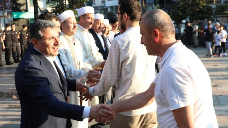 Düzce Valisi Cevdet Atay, Merkez Büyük Camii'nde kılınan bayram namazı sonrası vatandaşlarla bayramlaştı.
