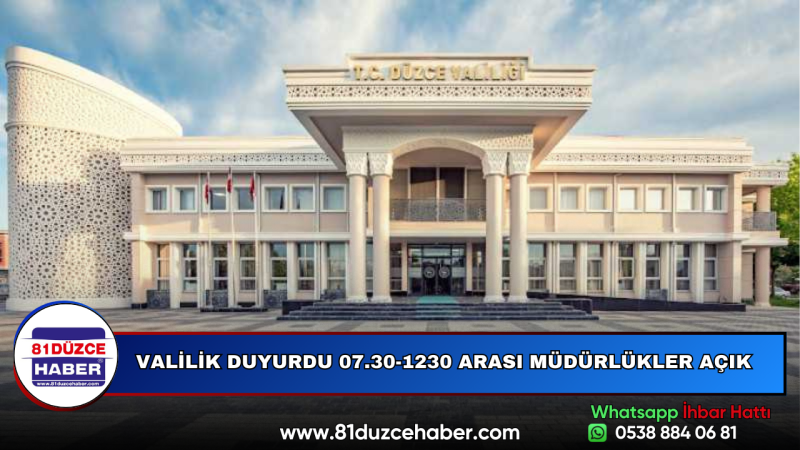 VALİLİK DUYURDU 07.30-1230 ARASI MÜDÜRLÜKLER AÇIK