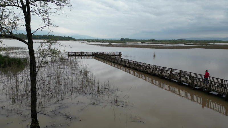 Düzce'nin önemli turizm destinasyonlarından Efteni Gölü'nde sağanak yağış ve eriyen kar sularının ardından su seviyesi iskeleye kadar yükseldi.