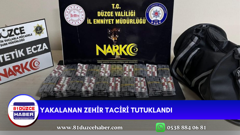 DMHA DÜZCE –Düzce İl Emniyet Müdürlüğü narkotik Suçlarla Mücadele Şube Müdürlüğü ekipleri tarafından çalışmalar neticesinde N.B. isimli şahsın uyuşturucu madde ticareti yaptığı tespit edildi. Yakalanan şahsın çantasında yapılan arama sonucunda bin 120 adet Sentetik Ecza hapı ele geçirildi. Gözaltına alınan şahıs hakkında yapılan işlemlerin ardından sevk edildiği mahkemece tutuklanarak ceza evine teslim edildi.