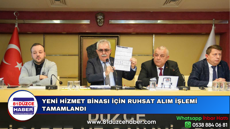 Düzce Ticaret ve Sanayi Odası yeni hizmet binası yapımı konusunda önemli bir aşama olan bina yapım ruhsatı imzalanan evrak ile tamamlanmış oldu.