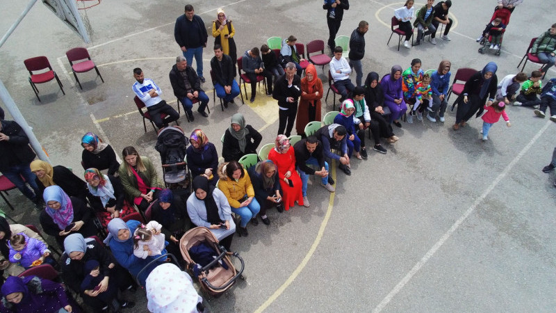 Her sınıfın ayrı bir etkinlik yapılan okulda etkinlikler dron çekimi ile havadan görüntülendi.