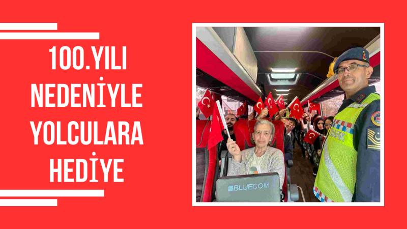 Düzce İl Jandarma Komutanlığı'na bağlı ekiplerin yapmış denetimlerde otobüs yolculuğu yapan kişilere Cumhuriyet'in 100. Yılı nedeniyle Türk Bayrağı ile 100.Yıl Hatıra Anahtarlığı hediye edildi.