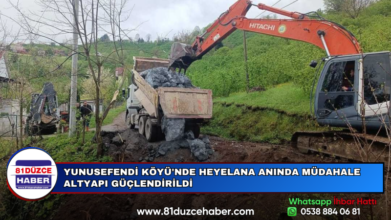 Düzce İl Özel İdaresi Yol ve Ulaşım Hizmetleri Müdürlüğü ile Gölyaka İlçe Özel İdare Müdürlüğü ekipleri, Yunusefendi Köyü’nde meydana gelen heyelana hızlı bir şekilde müdahale ederek bölgede yürüttükleri altyapı çalışmalarını başarıyla tamamladı.